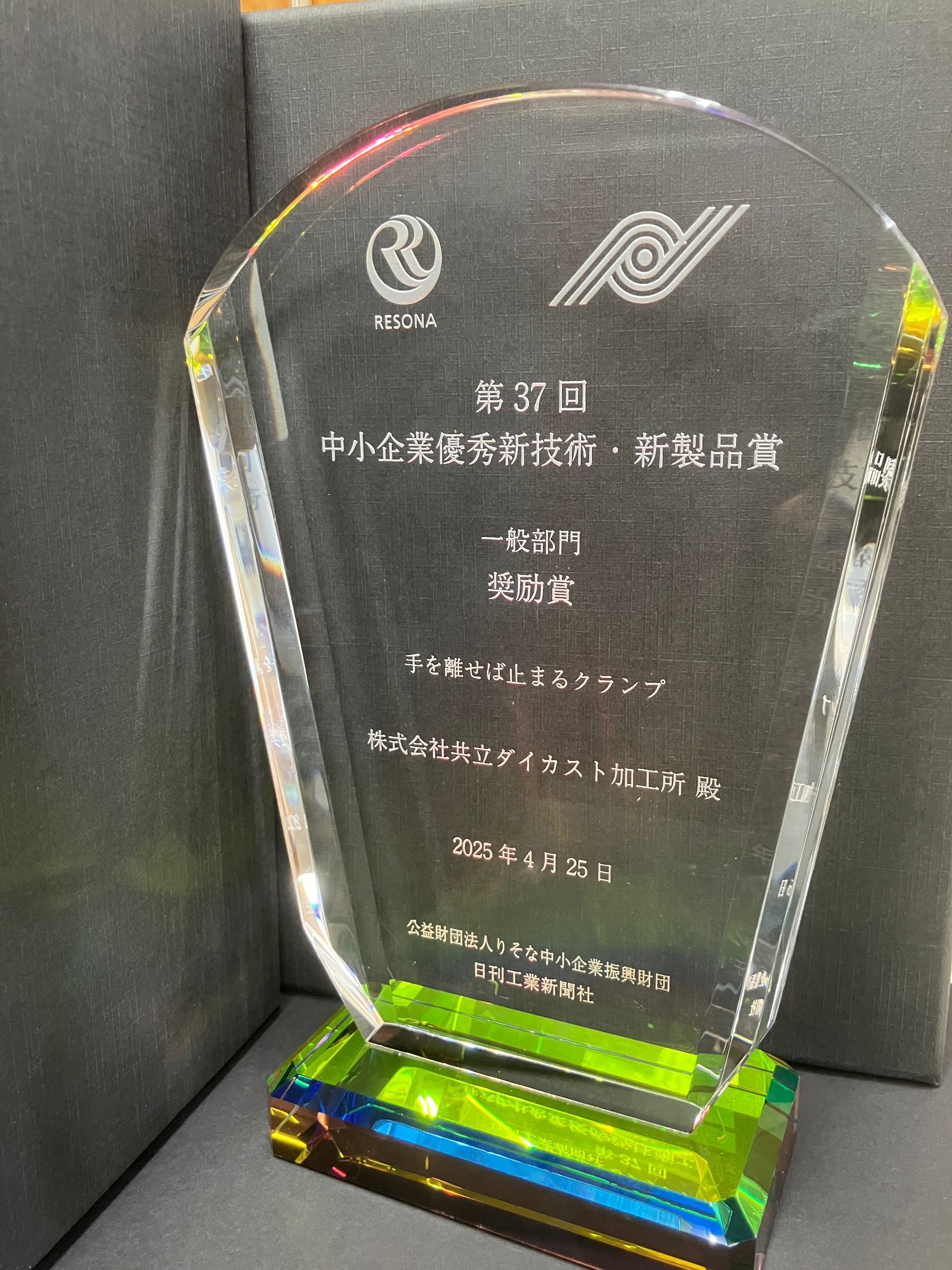 このたび、りそな中小企業振興財団・日刊工業新聞社共催の「第37回中小企業優秀新技術・新製品賞」において、弊社の製品が奨励賞を受賞いたしました。