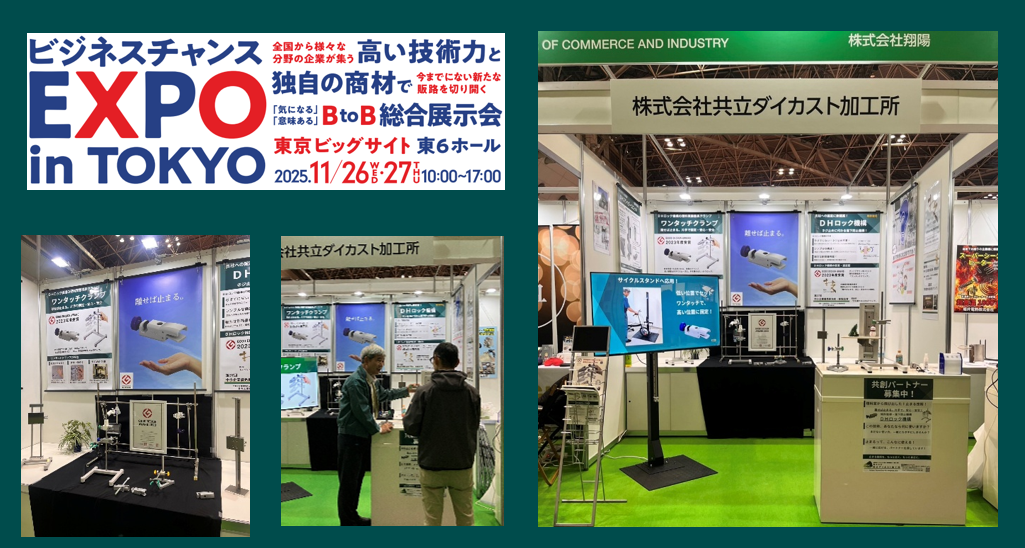 会期中は多くの来場者の皆様に弊社ブースへお立ち寄りいただき、ワンタッチクランプやDHロック機構を知っていただく貴重な機会となりました。